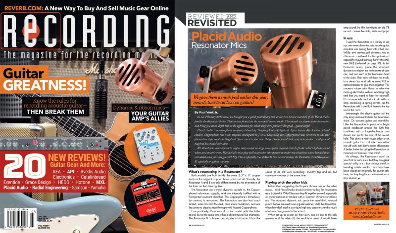 Recording Magazine goes into detail on to use the Resonator A and Resonator B for guitars! Read the full article here.