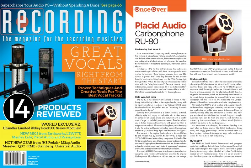 The Carbonphone RU-80 gets a rave review in the Feb 2018 issue of Recording Magazine! Read the full article here.